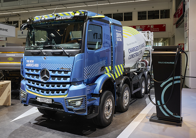 Among the wide range of trucks on display was the Mercedes-Benz eArocs 400, the first battery-electric variant of the tried-and-tested workhorse, Arocs, from Mercedes-Benz Trucks, which has been one of the most important players in construction haulage for years. The locally CO2-free and low-noise electric truck marked its world premiere at this year’s bauma, where Mercedes-Benz Trucks once again highlighted the innovations it is using to drive forward the transformation to CO2-neutral drives on the vehicle side and how these solutions also benefit the construction industry.