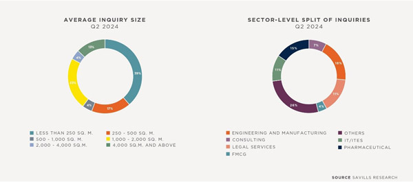 Savills observed a significant increase in leasing activity during the second quarter of 2024. This growth was driven by a variety of sectors, including Technology, Media & Telecommunications (TMT), Consulting & Engineering, Manufacturing, and IT/ITes. Notably, 50% of these completed transactions involved new entrant companies, indicating a positive market sentiment for business expansion.