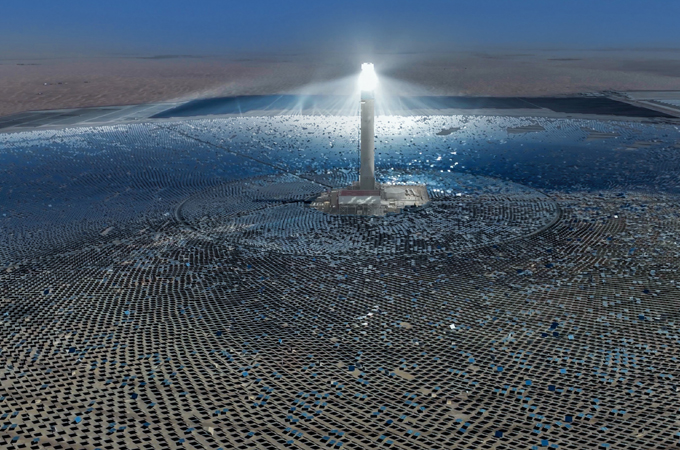The 4th phase of the Solar Park uses three hybrid technologies to produce clean energy: 600MW from a parabolic basin complex (three units of 200MW each), 100MW from the world’s tallest solar power tower at 262.44 m (based on Molten Salt technology), and 250MW from photovoltaic solar panels. So far, 717MW have been commissioned from this phase, which will have the largest thermal storage capacity in the world of 15 hours, allowing for solar energy availability round the clock.