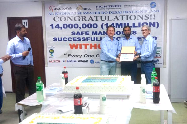 Leading Spanish infrastructure major Acciona has announced that it has achieved 14 million man-hours without lost-time injuries (LTI) at the Al Khobar 2 SWRO desalination plant, in the Kingdom of Saudi Arabia (KSA).