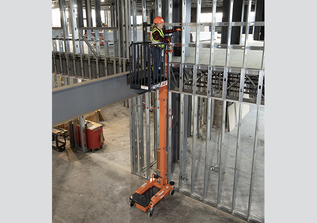 Key features of the 1230P include a work platform with a vertical rail system for added protection; auto-lock brakes, which engage upon elevation for improved stability; and easy-lock caster wheels with better swivel for fast positioning.