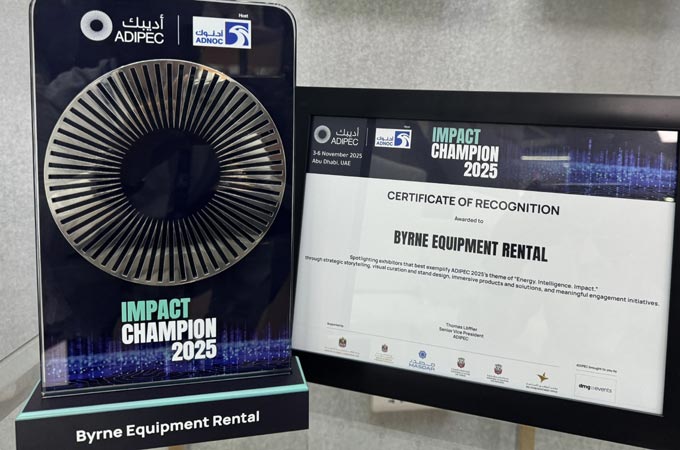 Byrne Equipment Rental, one of the Middle East’s leading equipment rental companies, has been recognised as an ADIPEC Impact Champion 2025, honouring exhibitors that best embodied this year’s theme: Energy. Intelligence. Impact.
