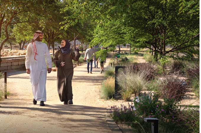 The park - being developed as part of the massive King Salman Park project - features more than 47,000 native, valley-adapted trees, providing shade across approximately 54% of the park’s area. It will include tree-lined pedestrian promenades along the neighborhoods overlooking the valley, 52km of walking trails and a 33-km cycling track - designed to encourage residents to exceed an average of 6,000 steps per day, said RCRC in a statement.