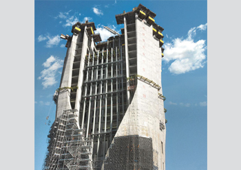 For the iconic Al Hamra Tower, Peri combined different climbing formwork systems as well as Skydeck slab formwork to provide a comprehensive customised solution.